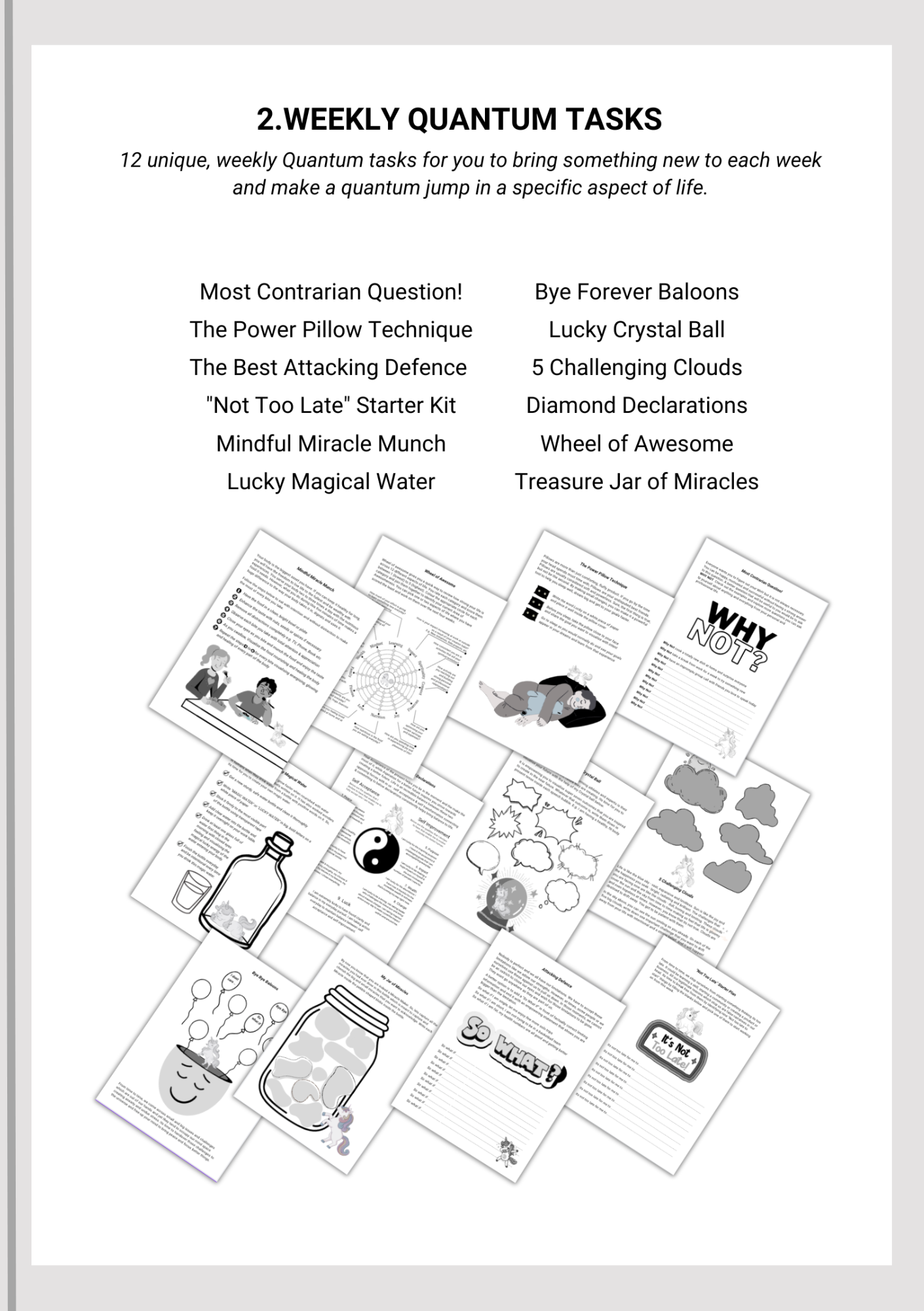 12 unique, weekly Quantum tasks for you to bring something new to each week and make a quantum jump in a specific aspect of life.