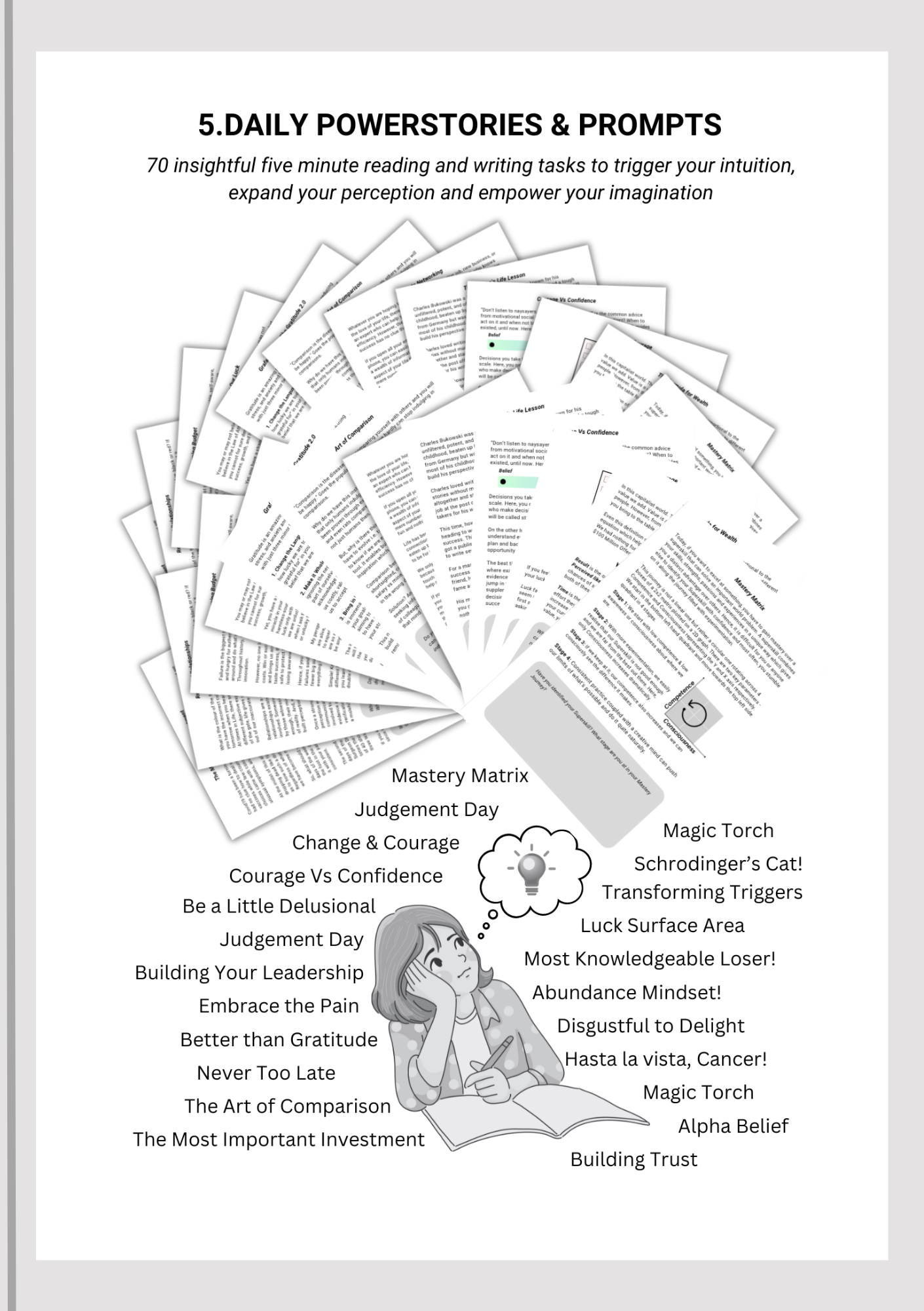This is a mini book at the start of the journal that sets an empowering context for the consistent, courageous power habits that will bring massive results.